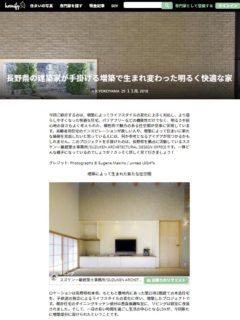 スズケン一級建築士事務所 TOPICS 16 December, 2018 “本棚がデザインに溶け込む家10選” houzz ウェブサイトhouzzにて「ほんとのいえ」が掲載されています。記事のタイトルは”本好きにおすすめ。本棚がデザインに溶け込む家10選”という特集です。どれも素... ウェブサイトhouzzにて「ほんとのいえ」が掲載されています。記事のタイトルは”本好きにおすすめ。本棚がデザインに溶け込む家10選”という特集です。どれも素敵の住宅が選ばれています。そんな中に選んでいただきとても光栄です。「ほんとのいえ」は3年程前に横浜で改修設計した住宅です。築40年の住宅を1万5千冊の本と暮らす二世帯住宅に改修しました。是非、家づくりの参考に記事をご覧ください。 houzz ”本好きにおすすめ... November, 2018 30 November, 2018 homify記事|光カーテンのある家 住宅の情報を発信しているウェブサイトhomify(ホミファイ)にて、「光カーテンのある家」が取り上げられています。既存住宅のリノベーションと増築を行い、... 住宅の情報を発信しているウェブサイトhomify(ホミファイ)にて、「光カーテンのある家」が取り上げられています。既存住宅のリノベーションと増築を行い、家の構成を一新した住宅事例です。この物件は扶桑社から発売されている「オトナリノベーションNo.4」(p28~31)にも掲載されています。homifyの記事では竣工当時の写真が見られます。雑誌では竣工後三年経った状況を確認することができます。見比べて頂くと建築の魅力... 22 November, 2018 イベント&セミナーのお知らせ 長野県伊那市においてイベントに参加します。23日にはセミナーの講師を務めます。お近くの方は是非お寄りください。 ASJ南信スタジオ「建築家展」~地元長... 長野県伊那市においてイベントに参加します。23日にはセミナーの講師を務めます。お近くの方は是非お寄りください。 ASJ南信スタジオ「建築家展」~地元長野で活躍する人気建築家~ 日時 11月23日㈮~25日㈰ 10時~17時 場所 長野県伊那文化会館1F展示ホール セミナー 「リノベーション住宅のホントの話」~ヒト×オカネ×ストーリー~ 23日㈮13時30分~14時30分 21 November, 2018 インタビュー掲載誌「住まいの設計12月号」 現在発売中の「住まいの設計12月号」(p106~109)にスズケン一級建築士事務所の鈴木が地方移住者としてインタビューを受けています。自宅での取材でしたの... 現在発売中の「住まいの設計12月号」(p106~109)にスズケン一級建築士事務所の鈴木が地方移住者としてインタビューを受けています。自宅での取材でしたので8年前にリノベーションした「あなたとわたしの家」の現在の様子もわかります。リノベーション住宅の事例としてもご覧いただけます。家族総出で紙面に出ておりますのでどうぞご笑覧ください。 21 November, 2018 掲載誌|オトナリノベーション No.4 扶桑社から発売されたオトナリノベーション No.4にリノベーションと増築の事例として「光カーテンのある家」(誌面ではN邸 P28~31)が掲載されています。50... 扶桑社から発売されたオトナリノベーション No.4にリノベーションと増築の事例として「光カーテンのある家」(誌面ではN邸 P28~31)が掲載されています。50代からの住空間をリノベーションで作り直した事例に特化したムックです。自らの生活スタイルをより高めていこうとする方々へ向けた内容となっています。今回はキッチン・バス特集です。キッチンを主に取り上げて頂きましたが、増築ならではの空間作りについても、丁寧に... August, 2018 11 August, 2018 ”セミナー” OZONE 新宿にあるリビングデザインセンター”OZONE"にて9月15日㈯14時にセミナー講師をいたします。タイトルは”「ほんとのいえ」のほんとのはなし ヒト×オカネ×スト... 新宿にあるリビングデザインセンター”OZONE"にて9月15日㈯14時にセミナー講師をいたします。タイトルは”「ほんとのいえ」のほんとのはなし ヒト×オカネ×ストーリー”です。リノベーション住宅について「ほんとのいえ」を題材にお話しさせて頂きます。どんな方がどんな思いで築40年の住宅をガラッとリノベーションするに至ったのか、またその検討時の紆余曲折やコストについてをお話しさせていただきます。是非ご興味のある方は... July, 2018 25 July, 2018 「光カーテンの家」homify ウェブサイトhomifyの記事の中でスズケンで設計した”光カーテンの家”が取り上げられました。記事のタイトルは「増築アイディアで素敵に変わる家」です。タイ... ウェブサイトhomifyの記事の中でスズケンで設計した”光カーテンの家”が取り上げられました。記事のタイトルは「増築アイディアで素敵に変わる家」です。タイトル通りこの家は既存3階建て住宅の1階部を増築した住宅です。記事の中でも紹介されていますが、将来の生活を見据えて、3階の建ての既存住宅の1階部分を拡げることで、平屋として生活を完結させることが出来るバリアフリー住宅としています。更にこれまでの生活とは違う... 7 July, 2018 イベント&セミナー|ASJ 2018年7月7日㈯、8日㈰の二日間